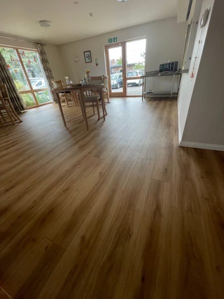 Our client at Abbeyfield Care Home was looking for the existing flooring to be removed and a modern, easy clean LVT floor to be installed. The Selby installation team uplifted stuck-down foam back carpet to re prep the floors. Moduleo LVT was fitted to brighten up the space which not only is now easy to clean and maintain but brings a smile to the residents faces.