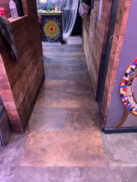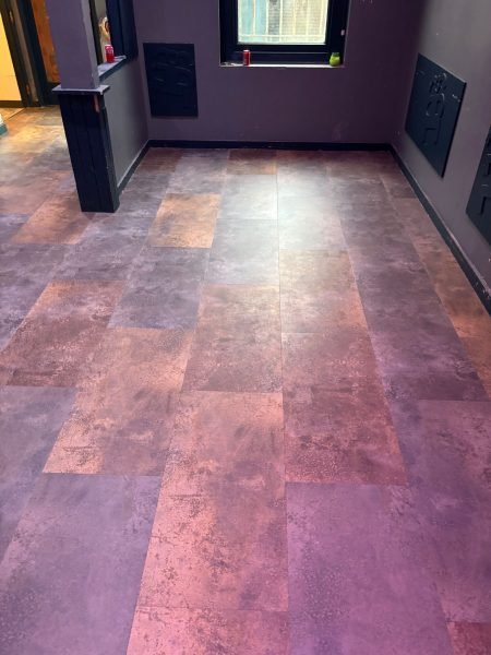 Our dedicated team expertly installed this high-quality LVT, chosen for its durability and eye-catching design, ideal for the restaurants vibrant atmosphere. The blend of Oxyde Brown and Oxyde Bronze Red brought a warm, industrial-chic vibe to the space, creating a welcoming and stylish environment. This project showcases our commitment to delivering exceptional flooring solutions with precision and care.