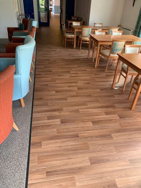 Another fantastic project completed by the Selby installation team. A number of communal and kitchen/breakout areas were completed to the highest of standards at a care home located in Wroughton. Gerflor Taralay Impression Comfort 1314 Walnut wood planks were one fo the many products installed throughout the ground floor.