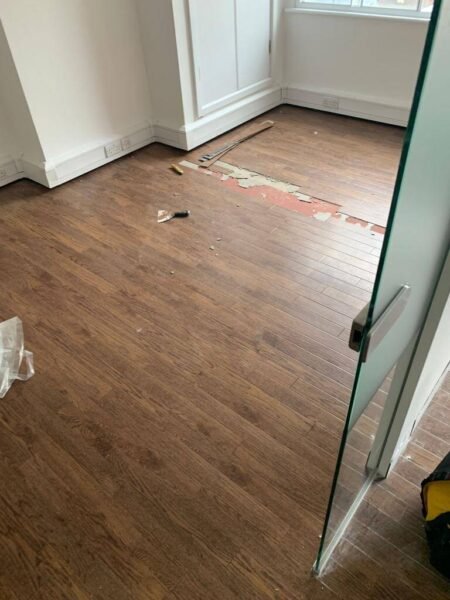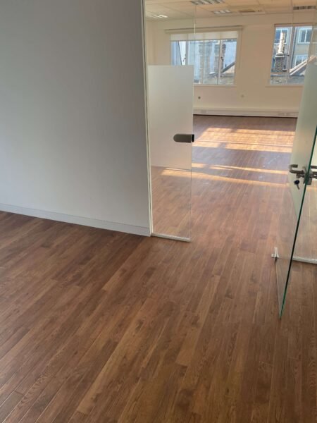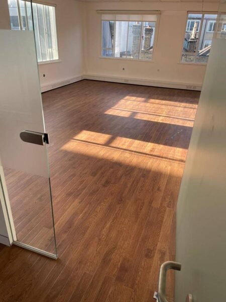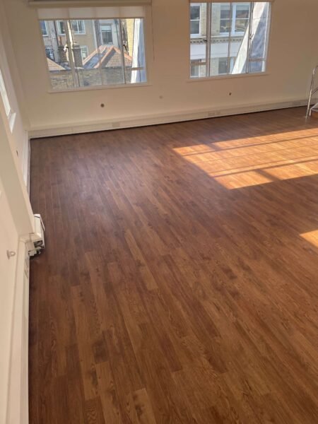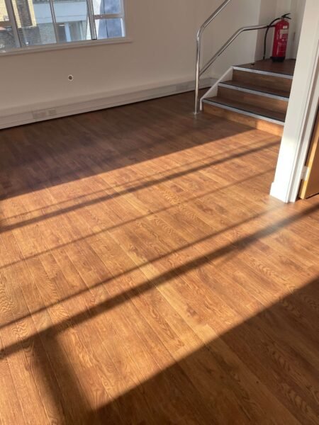 The Selby installation team transformed the damaged flooring to result in a professional, smart office. Karndean Da Vinci LVT in the colour Lorenzo Warm Oak was installed throughout the open plan office, staircase and kitchen area. The client was thrilled with the result!