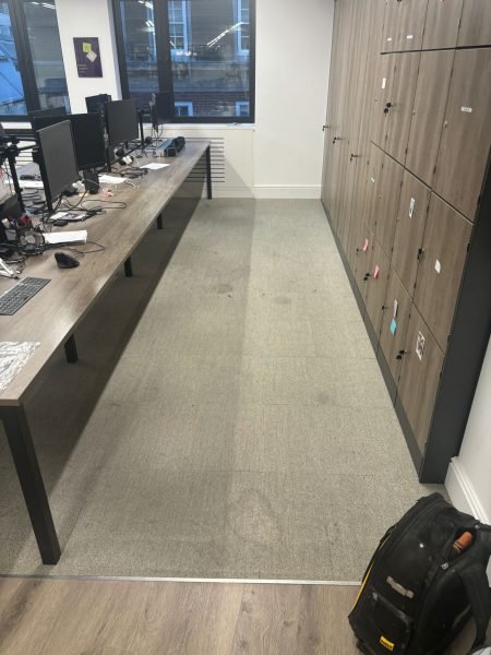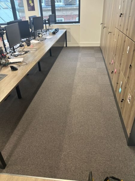 The team successfully completed a lift and shift project for a small office, where we removed the old carpet tiles and installed new Burmatex carpet tiles over a weekend.