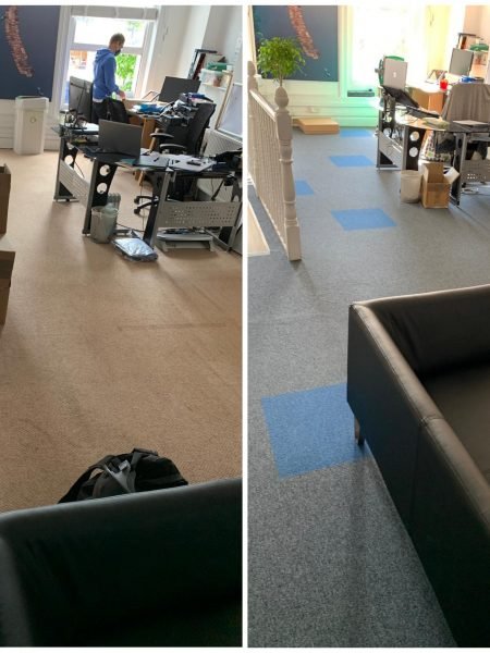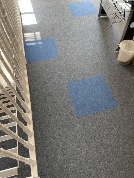 The Selby team added some colour to the once plain office area including reception, staircase and entrance matting. IVC Creative Spark carpet tiles replaced the damaged carpet to result in a clean, fresh space along with Morleys nosings to finish off the professional look. Spare carpet tiles were able to be left with the client in case of any spillages to the new floor which can be easily replaced by team Selby. Overall, the client was impressed with the transformation and wants the Selby team back for further works.