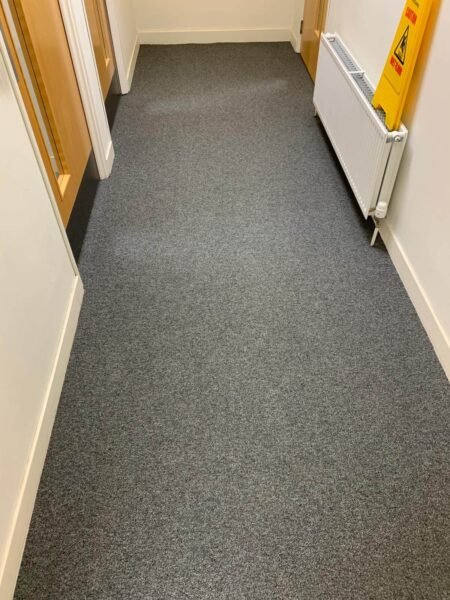 The Selby installation team work 24/7 to get the job done! The dedicated team supplied and installed Forbo Tessera Chroma carpet tiles to a number of offices, corridors and staircases. As well as preparing the subfloor, and installing Altro Walkway Dolphin where the existing vinyl was placed. The client was thrilled with the transformation!