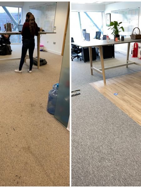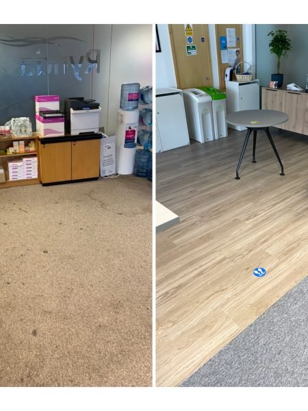 Another great office transformation completed by the Selby team in the heart of London, Cannon Street. Interface Employ Loop carpet tiles were fitted to replace the once stained flooring to brighten up the large space. Whilst Interface Level Set LVT in Washed Wheat was fitted to create a professional breakout area for all staff to enjoy. The client was delighted with the works carried out by team Selby!