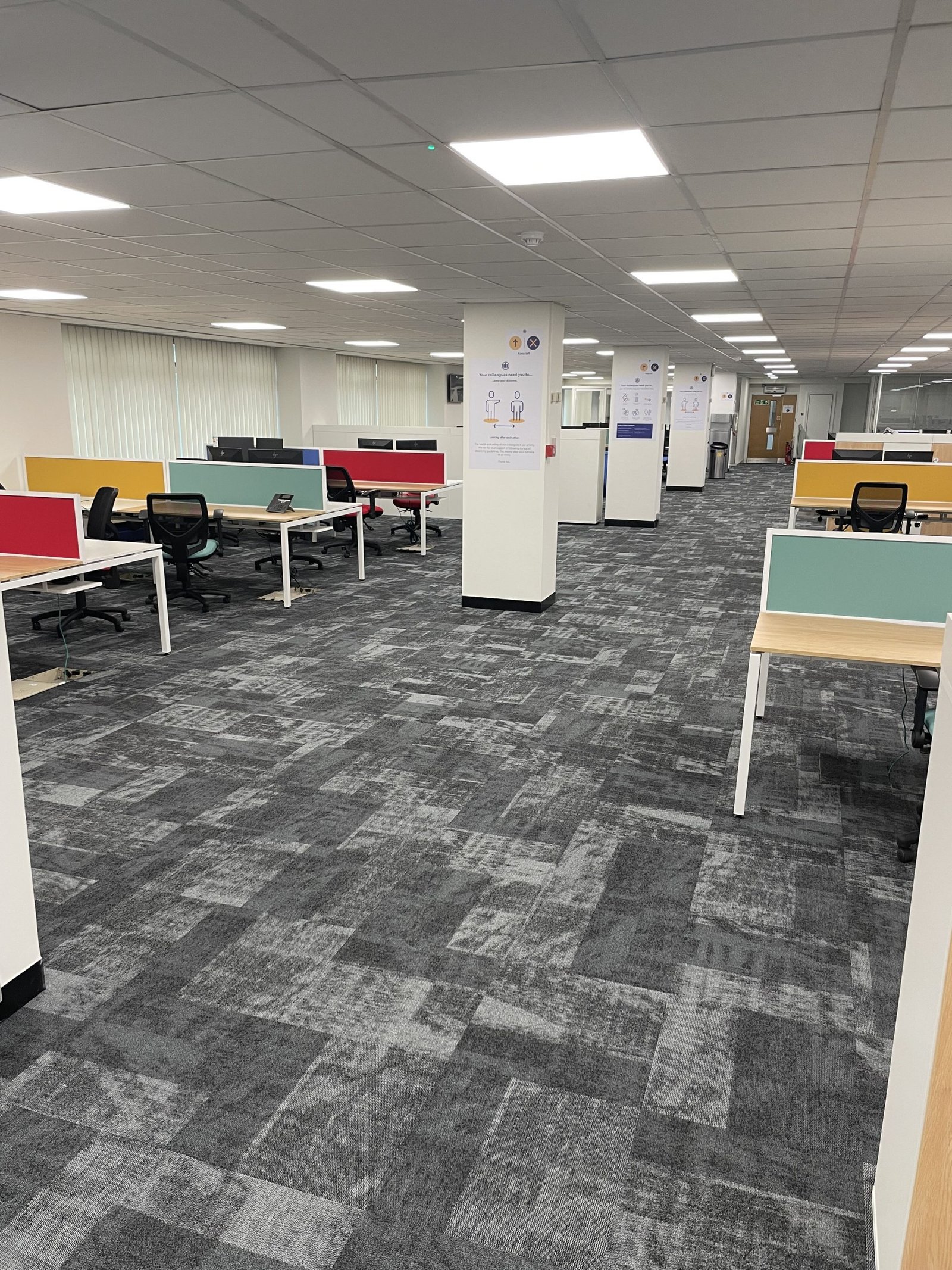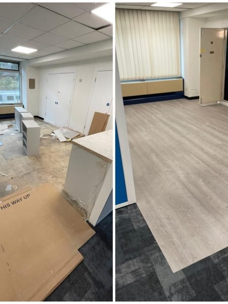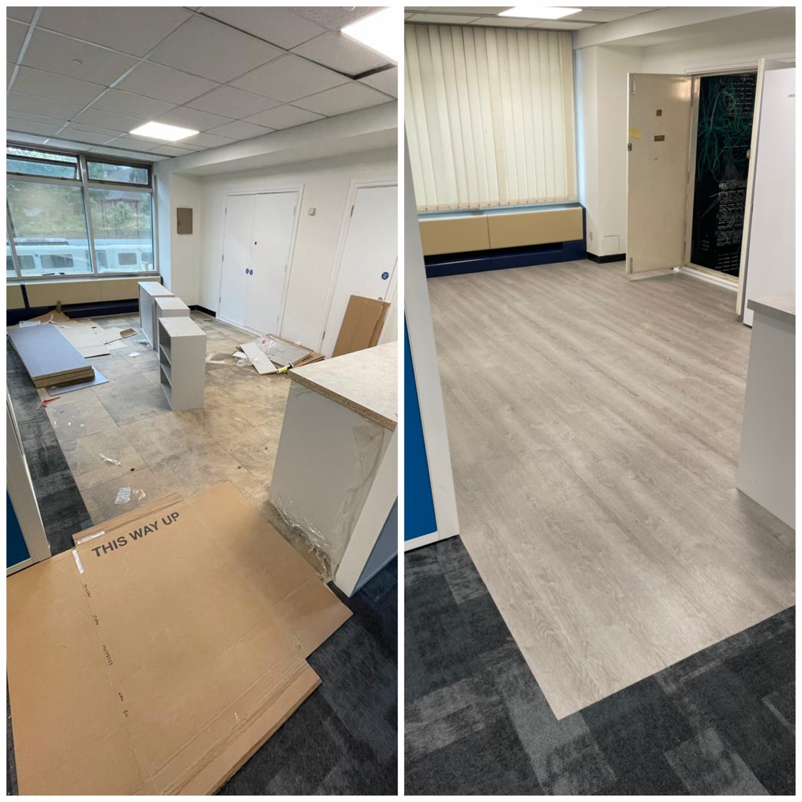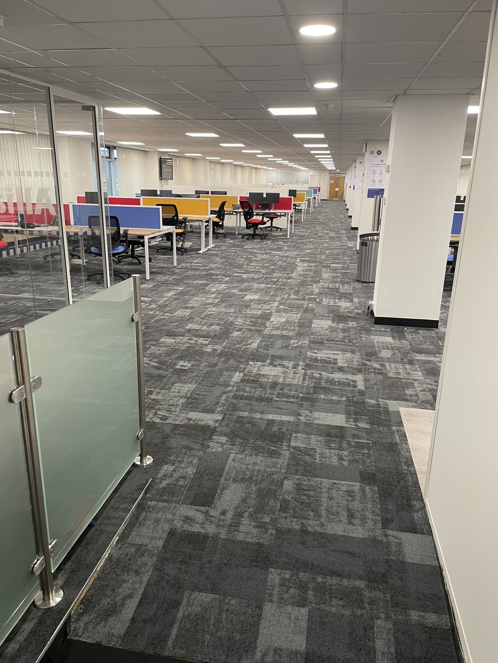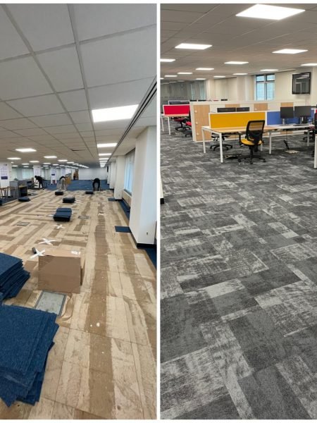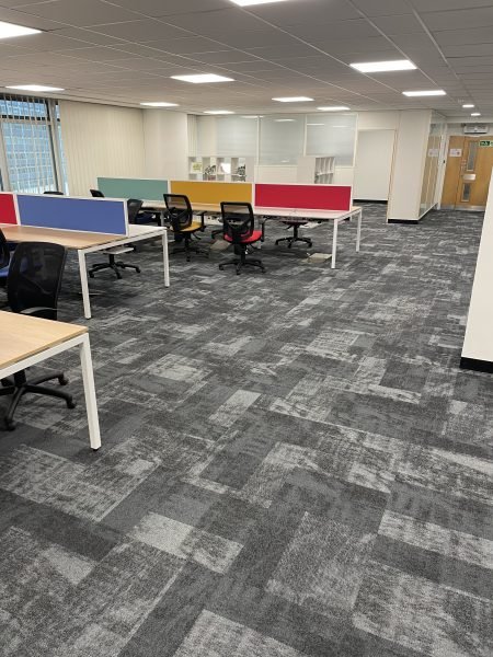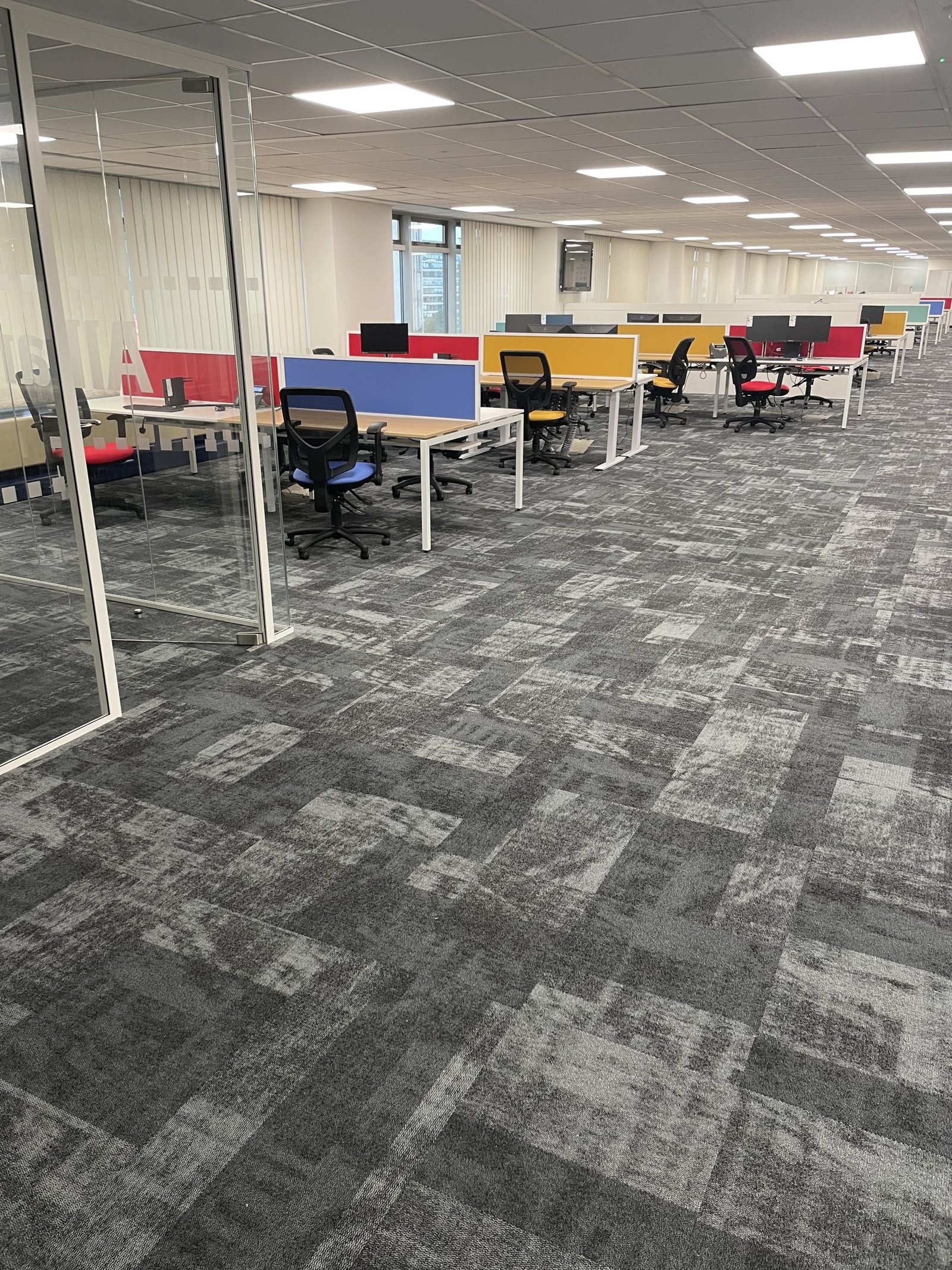 Another great transformation by the Selby installation team across several office floors including kitchen areas, lift, and toilet lobbies. The old, worn-out carpet tiles were removed and replaced with Milliken Unexpected Purpose to create a striking finish. LVT was also fitted in each kitchen area across the 4 floors along with Polyflor throughout the multiple toilet lobbies allowing for easy cleaning. Our client was delighted with the results and has booked in for our annual cleaning and maintenance service throughout the year.