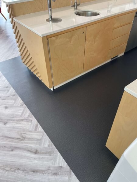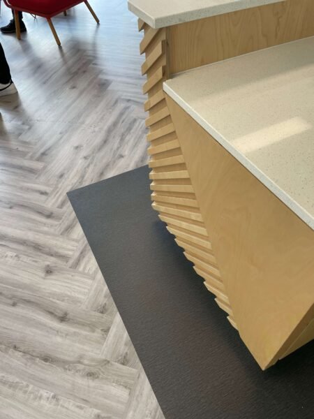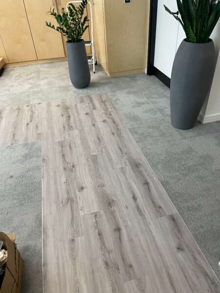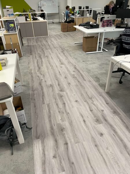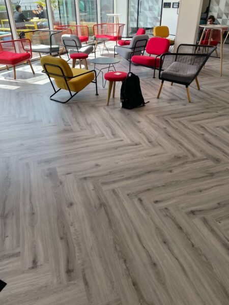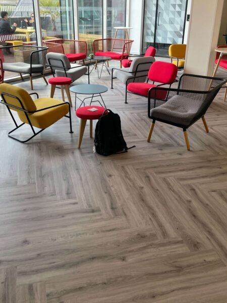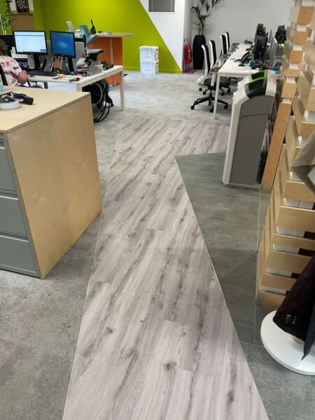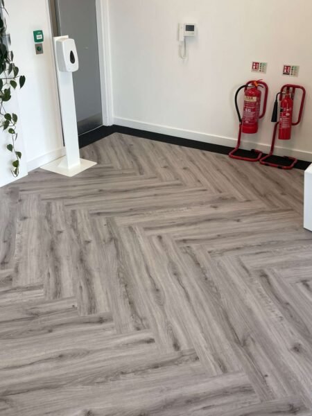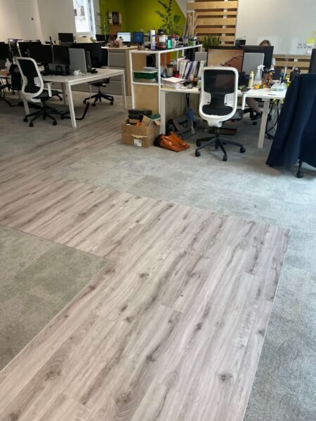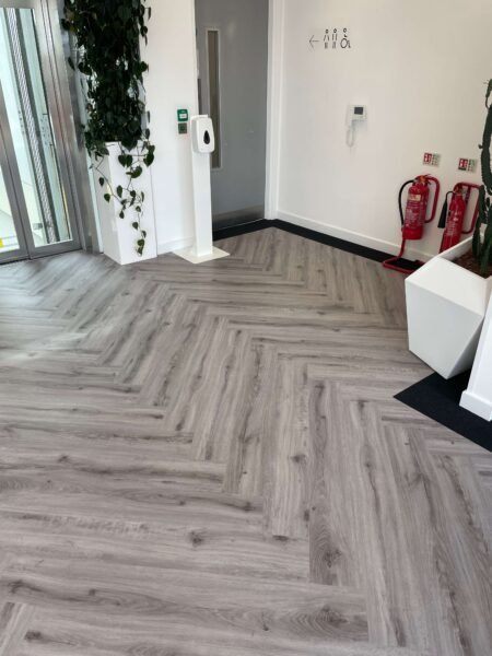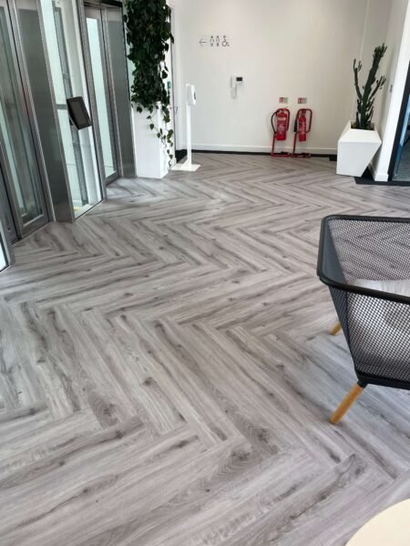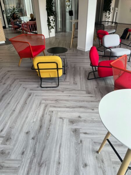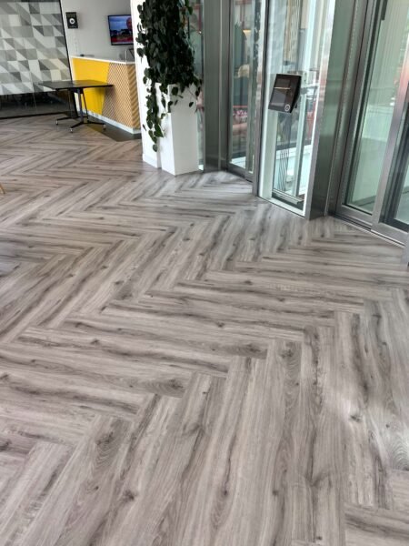 The Selby installation team transformed this central London serviced office. IVC Matrix Freelay LVT herringbone in the colour European Oak was fitted throughout the breakout area along with IVC Creative Spark carpet tiles added to create a striking border. The LVT was also installed across a number of levels to create a walkway amongst the existing carpet tiles. Additinal workspaces, kicthen areas and lift lobbies were also completed. The client was thrilled with the end result and have invited team Selby back to complete further areas. Well done team Selby!