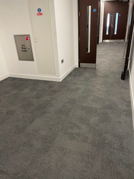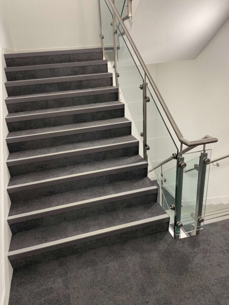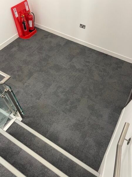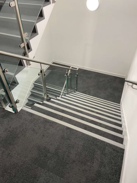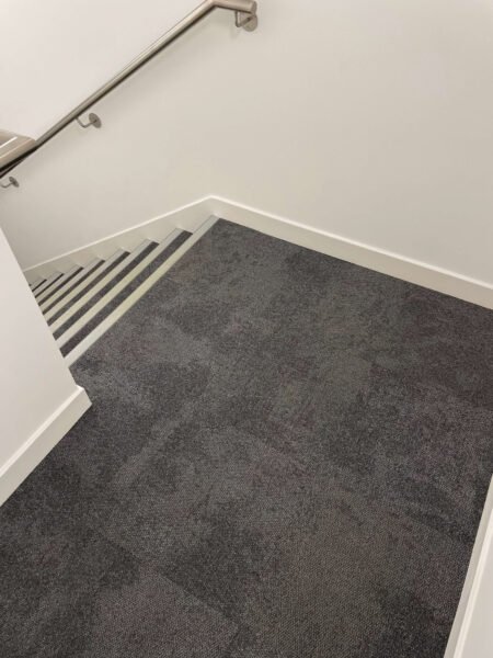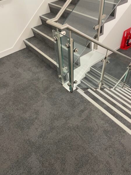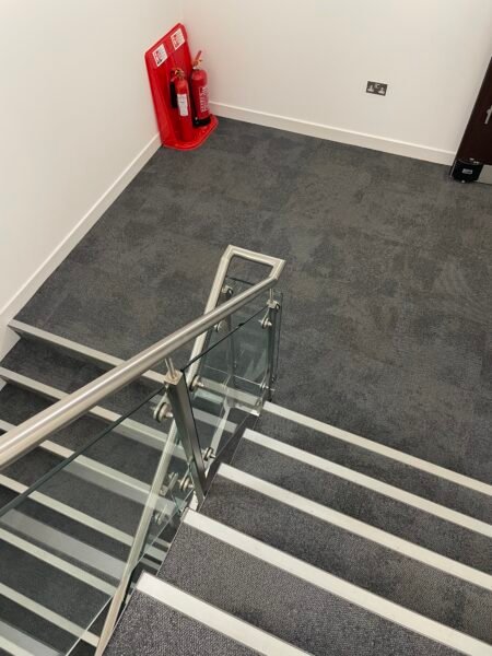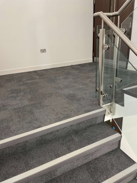 Our dedicated Selby installation team worked hard to complete a number of staircases across a Central London serviced office. Installing Interface Composure in the colour diffuse resulted in a clean, professional finish.