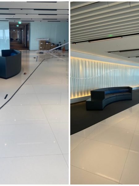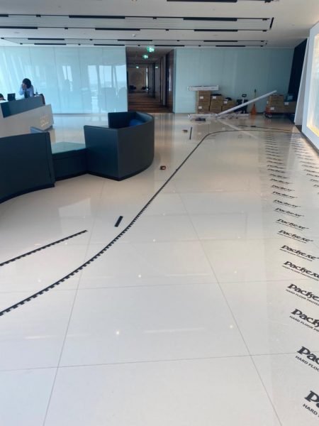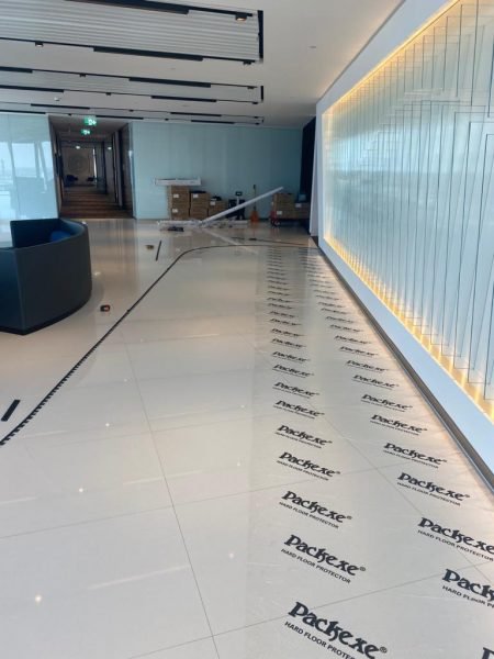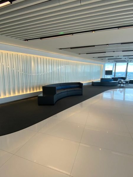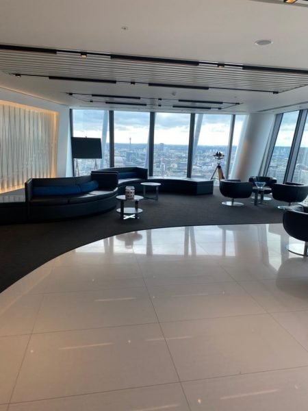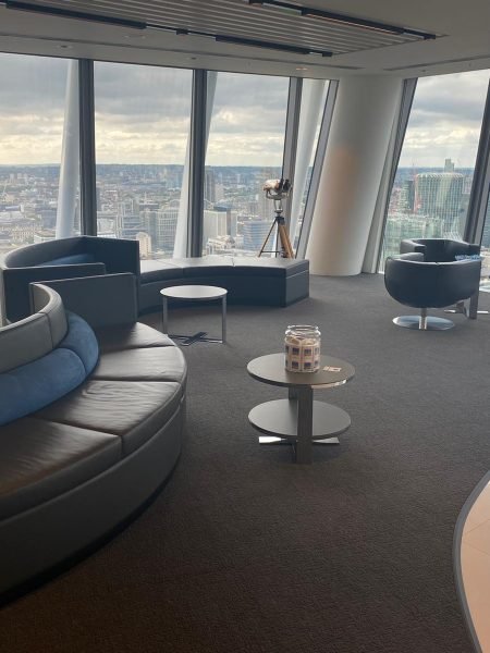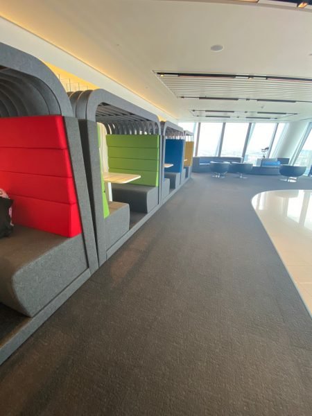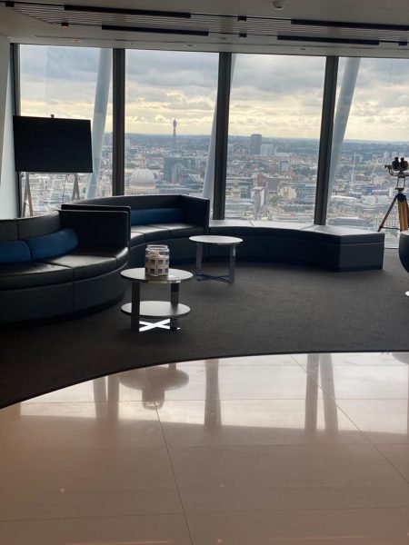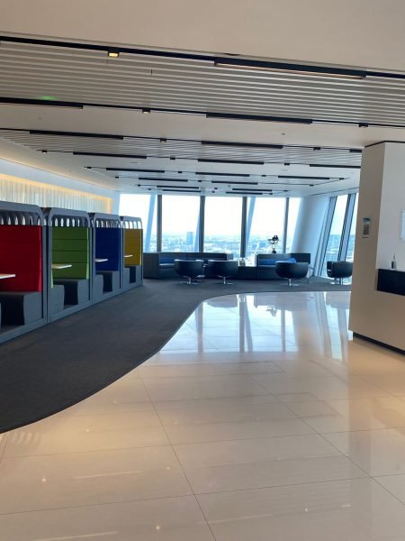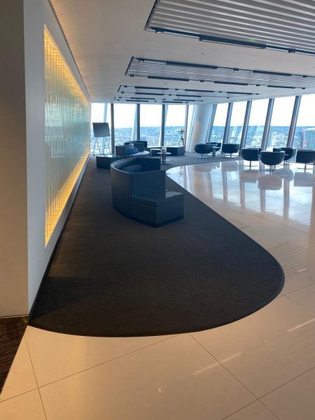 The Selby team worked on a reception area at the well-known Walkie Talkie building located in the heart of central London. The client wanted a carpeted area where they could install meeting pods whilst also breaking up the large white areas to create a less clinical space. Milliken carpet tiles were installed to create a sweeping curve to match the unique space of the floor. We are able to keep the porcelain tiles protected so they could restore them without any glue residue. Another great transformation by the Selby team.