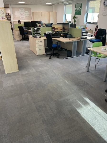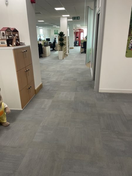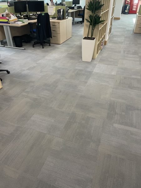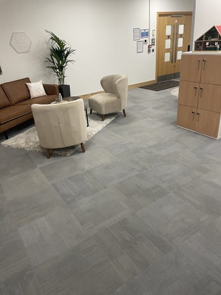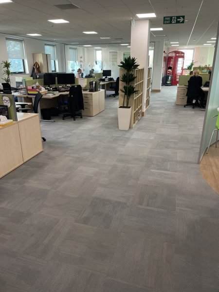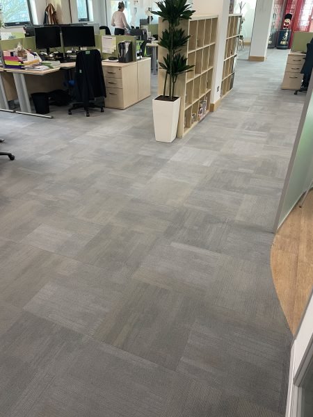 Another great transformation by the Selby installation team. The existing dull, worn-out carpet tiles through the workspace were replaced byForbo Tessera Contour colour 1906 Rising Ash carpet tiles. The mixture of colours throughout each tile brightens up the entire office and ties in perfectly with the interior design. The client was delighted with how professional the Selby team was.